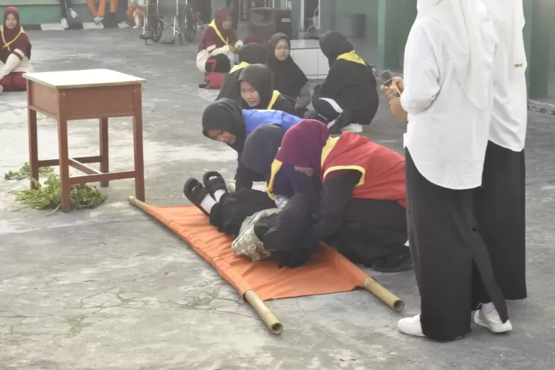 Dalam kegiatan yang dipandu langsung oleh pembina PMR, Bapak Safri, S.Pd.I, para anggota PMR Wira menampilkan simulasi penyelamatan korban kecelakaan serta drama edukatif bertema kesehatan. Aksi para siswa tersebut tak hanya menghibur, tetapi juga memberikan pesan penting tentang tanggap darurat dan pola hidup sehat.