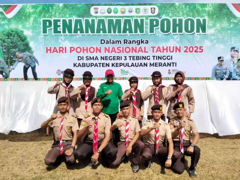 Selatpanjang (Mansakti) – Dalam rangka memperingati Hari Pohon Nasional 2025, Pramuka MAN 1 Kepulauan Meranti turut ambil bagian dalam kegiatan penanaman pohon pada Selasa 18 November 2025 yang dilaksanakan di SMAN 3 Tebing Tinggi. Kegiatan yang diprakarsai oleh Polda Riau ini melibatkan seluruh sekolah di Kecamatan Tebing Tinggi sebagai bentuk gerakan bersama untuk menjaga kelestarian lingkungan.