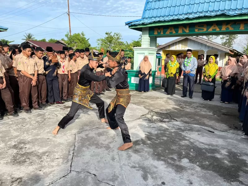 Rangkaian penyambutan diawali dengan penampilan tim kompang dari sanggar madrasah sebagai simbol penerimaan tamu secara adat. Suasana semakin semarak ketika dua siswa, Deno Afga Nugraha dan Doni Tristan, mempersembahkan atraksi silat yang memukau para tamu undangan. Acara penyambutan kemudian ditutup dengan penampilan Tari Persembahan oleh Sanggar Tiram Bertuah, menampilkan keanggunan budaya Melayu yang menjadi ciri khas MAN 1 Kepulauan Meranti.