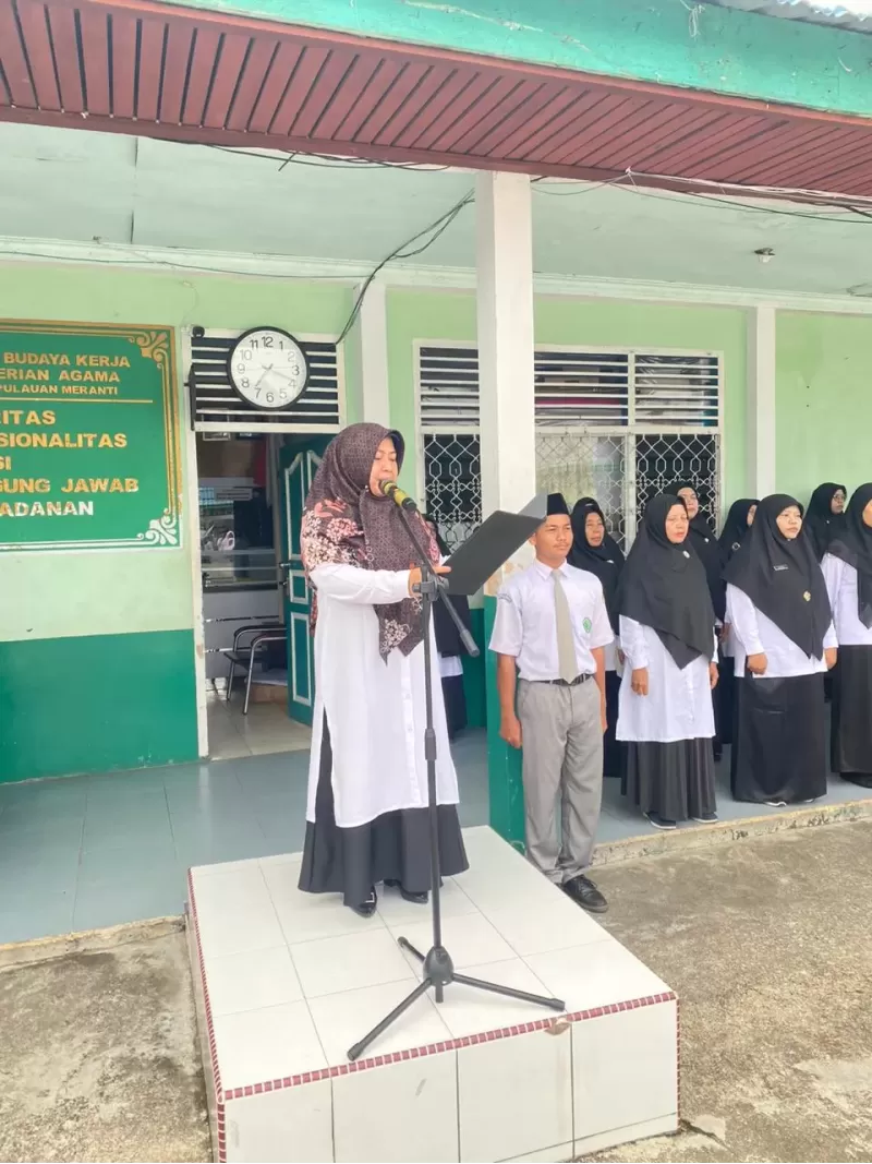 Bertindak sebagai Pembina Upacara, Kepala MAN 1 Kepulauan Meranti, Ibu Hj. Nuryaningsih, S.Pd., mengawali amanatnya dengan menyampaikan ucapan selamat Idulfitri serta apresiasi yang mendalam kepada seluruh keluarga besar madrasah.