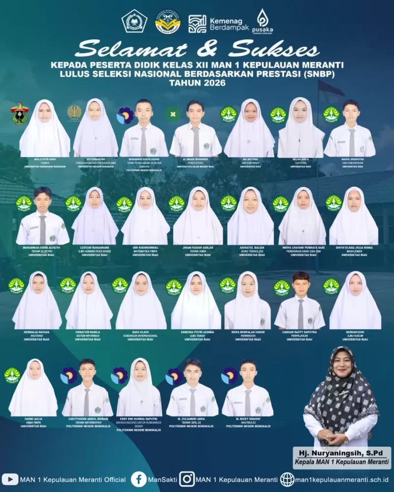 Dengan capaian ini, MAN 1 Kepulauan Meranti semakin memantapkan posisinya sebagai madrasah unggul yang mampu mengantarkan siswanya bersaing di level pendidikan tinggi nasional.(SM)