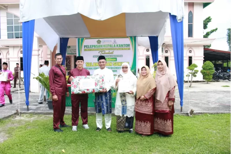 SELATPANJANG (Mansakti) – Keluarga besar Madrasah Aliyah Negeri (MAN) 1 Kepulauan Meranti turut hadir dalam prosesi pelepasan masa tugas Kepala Kantor Kementerian Agama (Kemenag) Kepulauan Meranti, Drs. H. Sulman, pada Jumat (24/4/2026). Bertempat di halaman Kantor Kemenag setempat, acara tersebut berlangsung dengan suasana khidmat dan dibalut rasa kekeluargaan yang erat.