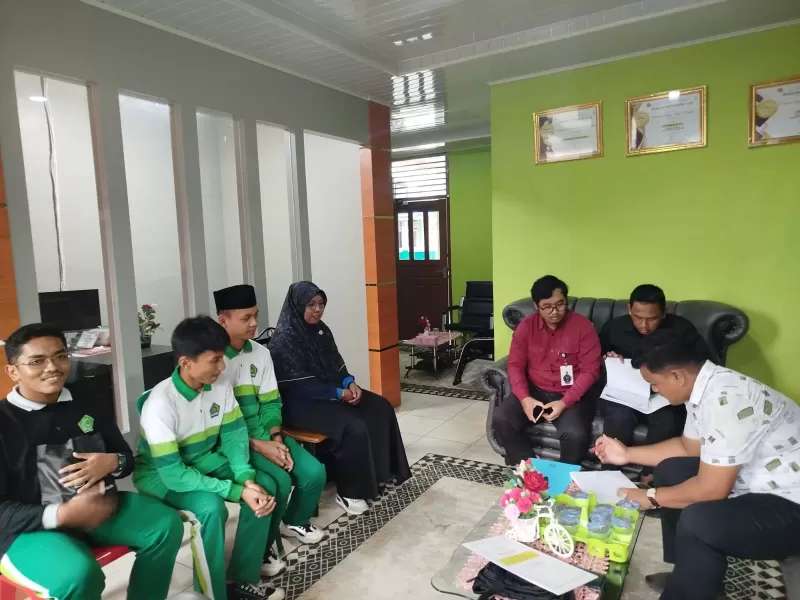 Waka Kesiswaan Rindra Gunawan, S.H dan Waka Humas MAN 1 Kepulauan Meranti menerima Tamu di ruang Madrasah di dampingi oleh Peserta Lomba Cerdas Cepat dan Guru Pembimbing Nilawati, S.Pd.