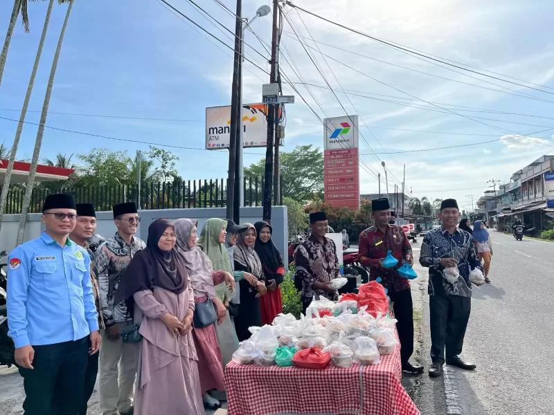 Selatpanjang (Mansakti) - Tenaga Pendidik dan Kependidikan MAN 1 Kepulauan Meranti turut berkolaborasi dengan Kementerian Agama (Kemenag) Kepulauan Meranti membagi takjil kepada masyarakat Kota Selatpanjang, pada hari Kamis (13/03/2025).