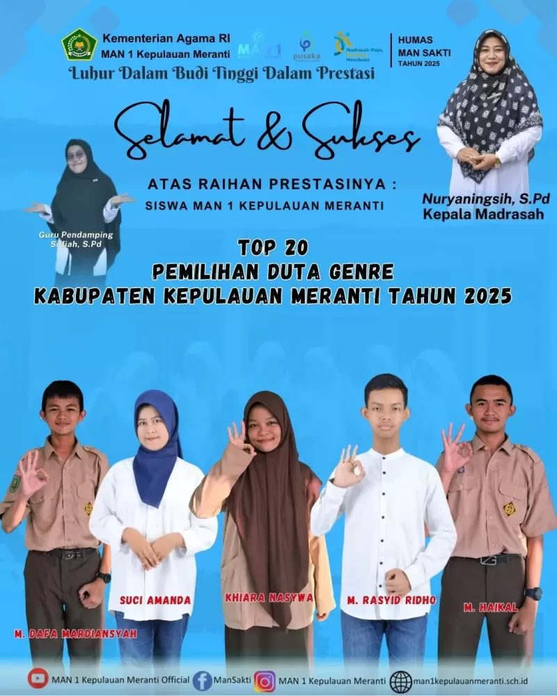 Prestasi Gemilang : Lima Siswa MAN 1 Kepulauan Meranti Lolos Top 20 Seleksi Duta GenRe Kabupaten Meranti 2025