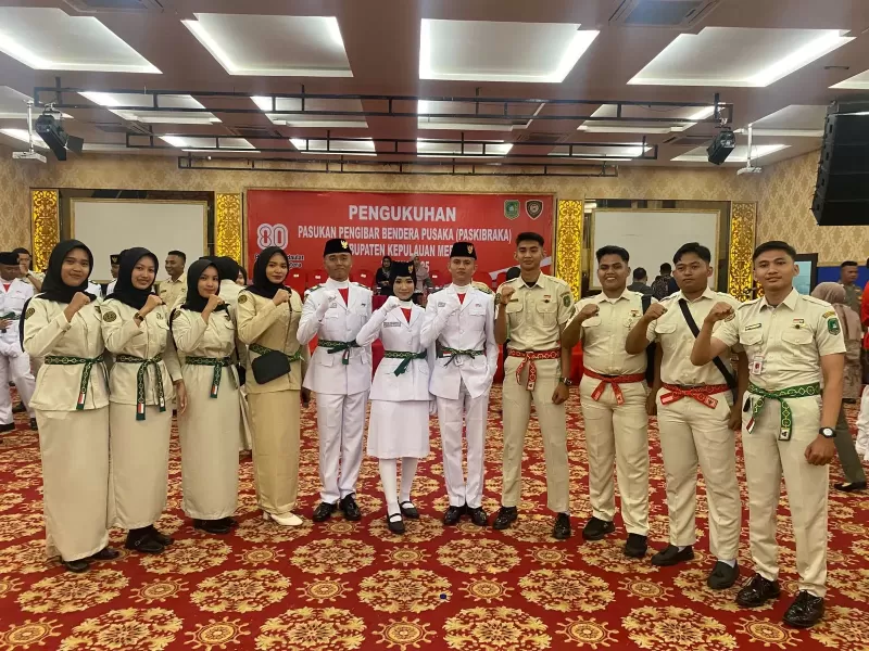 Selatpanjang (Mansakti) – Sebanyak tiga siswa MAN 1 Kepulauan Meranti resmi dikukuhkan sebagai anggota Pasukan Pengibar Bendera Pusaka (Paskibraka) Kabupaten Kepulauan Meranti untuk peringatan Hari Ulang Tahun (HUT) ke-80 Republik Indonesia. Pengukuhan berlangsung khidmat di Ballroom Grand Meranti Hotel, Jalan Kartini Selatpanjang, Jumat (15/8/2025) malam.