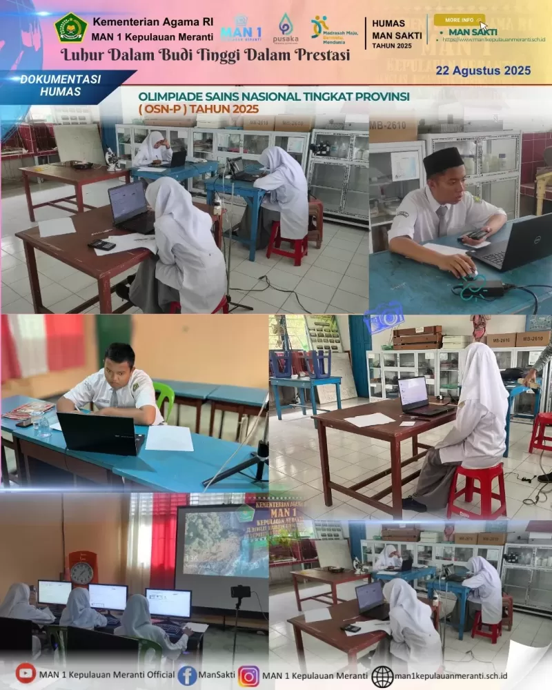Selatpanjang (Mansakti) – Madrasah Aliyah Negeri (MAN) 1 Kepulauan Meranti kembali menorehkan prestasi membanggakan dengan sukses melaksanakan Olimpiade Sains Nasional Tingkat Provinsi (OSN-P) tahun 2025. Kegiatan ini berlangsung selama tiga hari, 19–21 Agustus 2025, yang dipusatkan di Laboratorium Komputer MAN 1 Kepulauan Meranti.