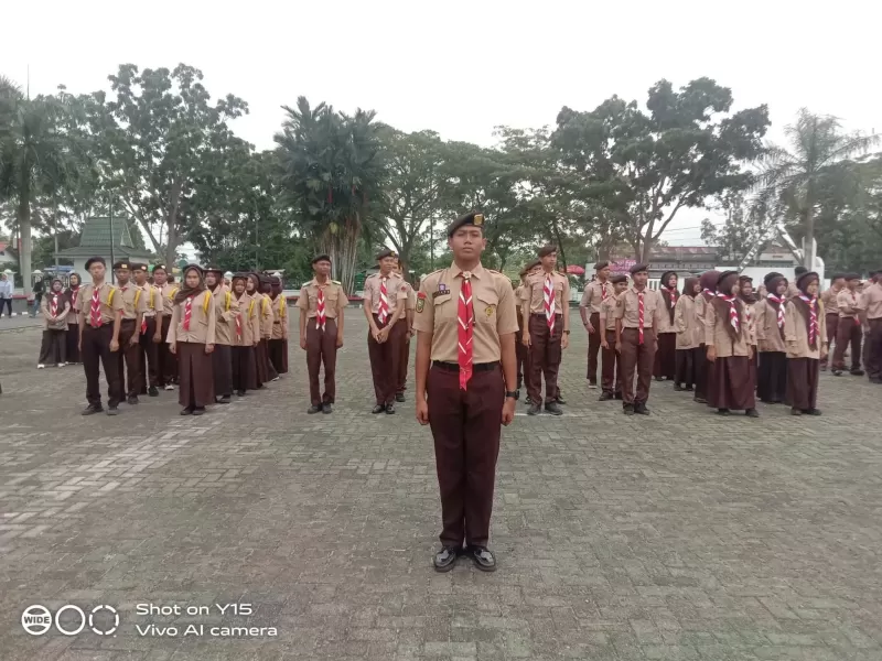 Pramuka MAN 1 Kepulauan Meranti Ikuti Upacara HUT Pramuka ke-64 Tahun 2025 di Halaman Kantor Bupati