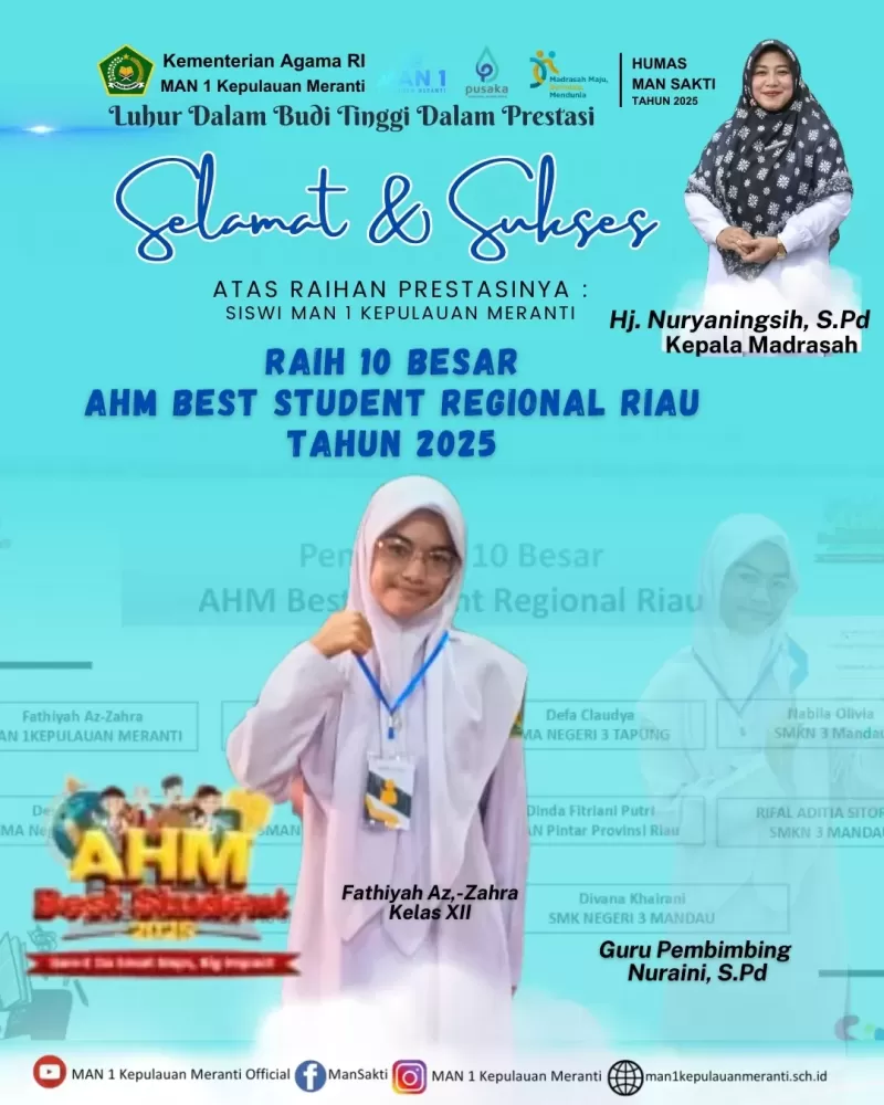 Prestasi Tanpa Henti : Fathiyah Az-Zahra Siswi MAN 1 Kepulauan Meranti Lolos 10 Besar AHM Best Student 2025 Tingkat Regional Riau