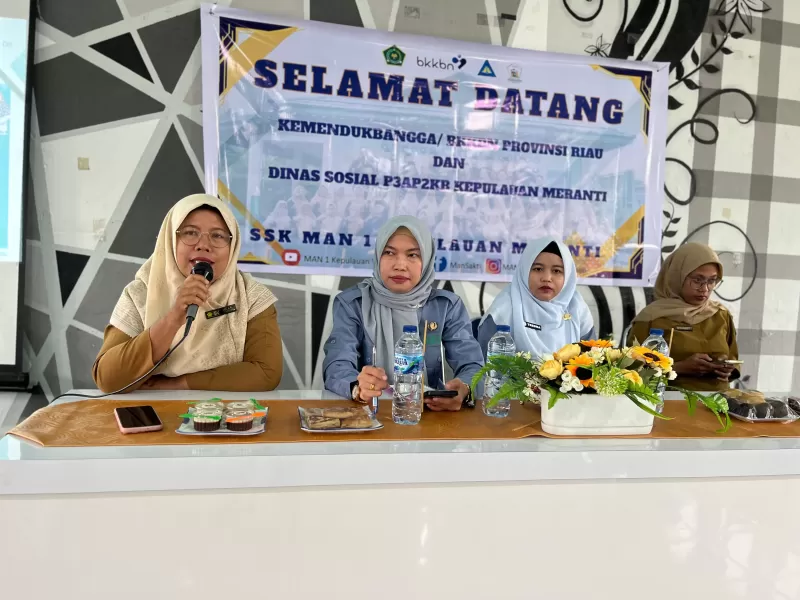 Selatpanjang (Mansakti) — MAN 1 Kepulauan Meranti menggelar kegiatan sosialisasi bersama Tim Pengendalian Kependudukan BKKBN Provinsi Riau dan Dinas Sosial P3AP2KB Kepulauan Meranti yang berlangsung di Aula Al-Kindy pada Selasa 25 November 2025. Kegiatan ini dihadiri sebanyak 35 peserta, terdiri dari tiga wakil kepala madrasah, tujuh guru dan pegawai, serta dua puluh siswa yang tergabung dalam Duta Genre dan Duta SSK.
